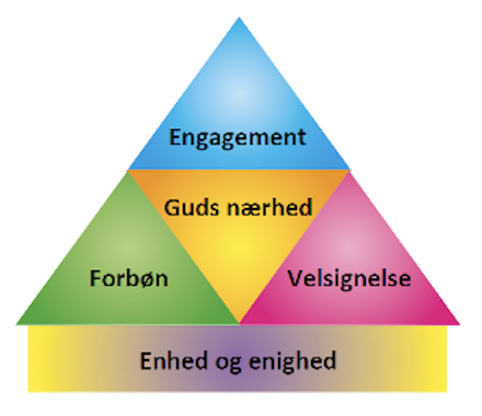 Vi er optaget af Guds nærvær og engagerer os i det, Gud gør, bl.a. ved ’Kalebspørgsmålene’ og ’Give me five’. Vi mødes på et fundament af enhed og enighed, og vi velsigner og beder for vores stykke land.